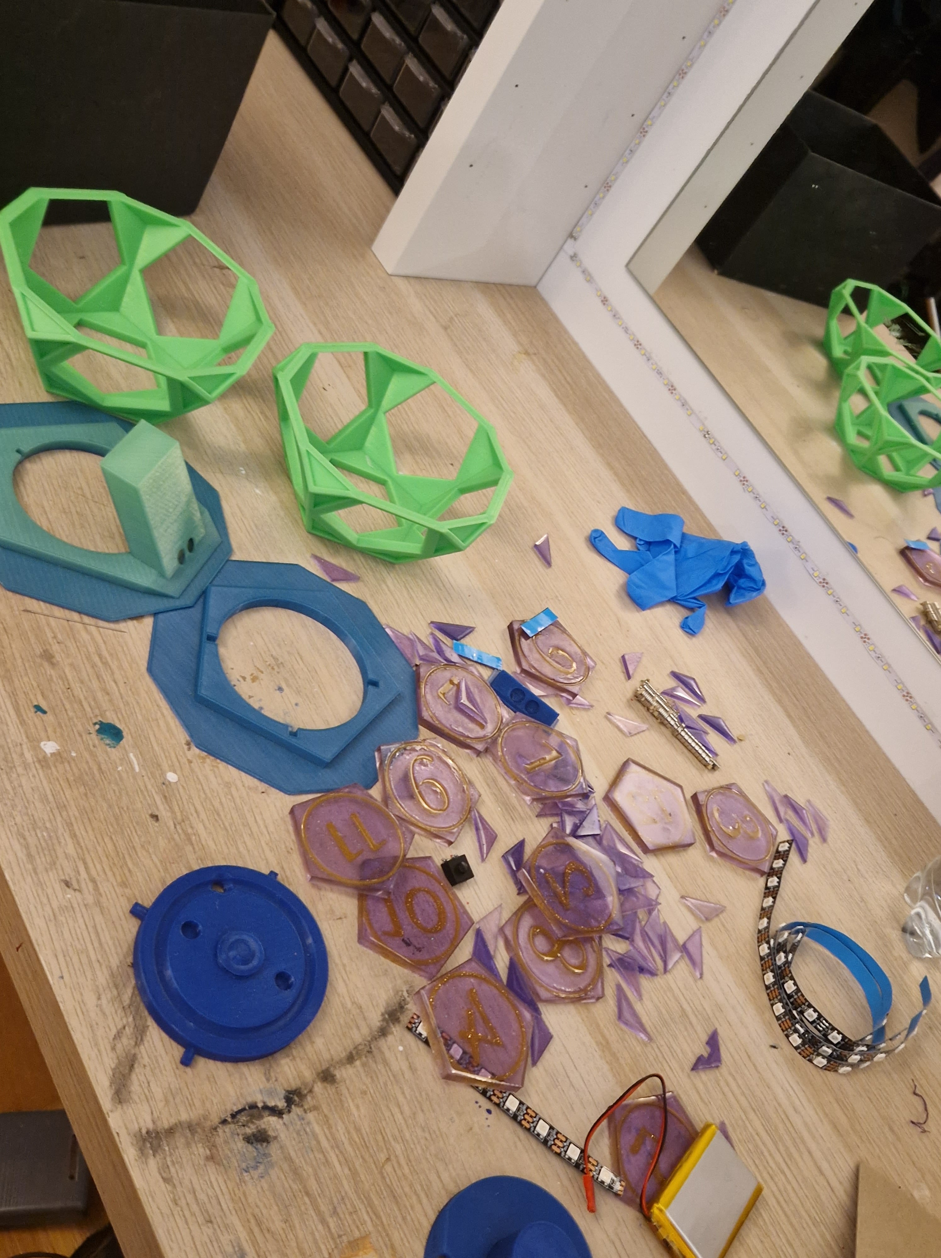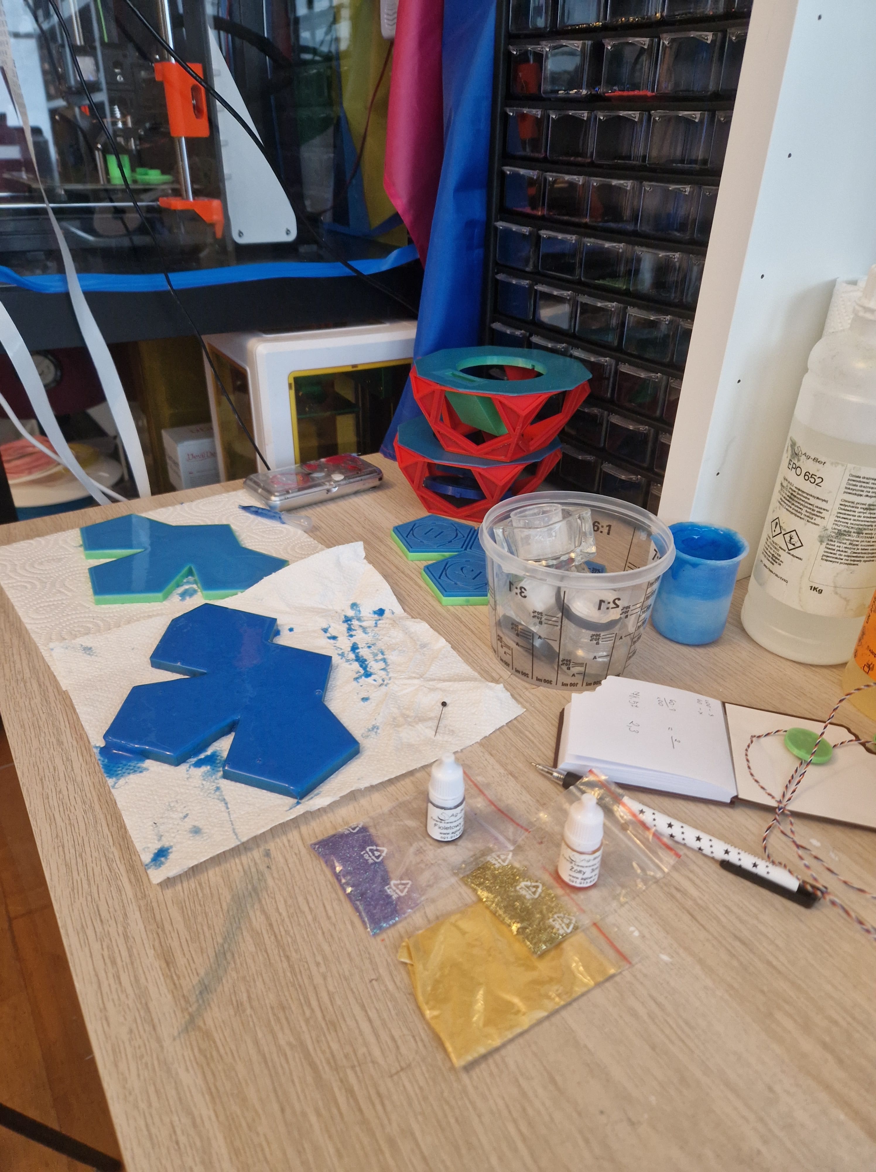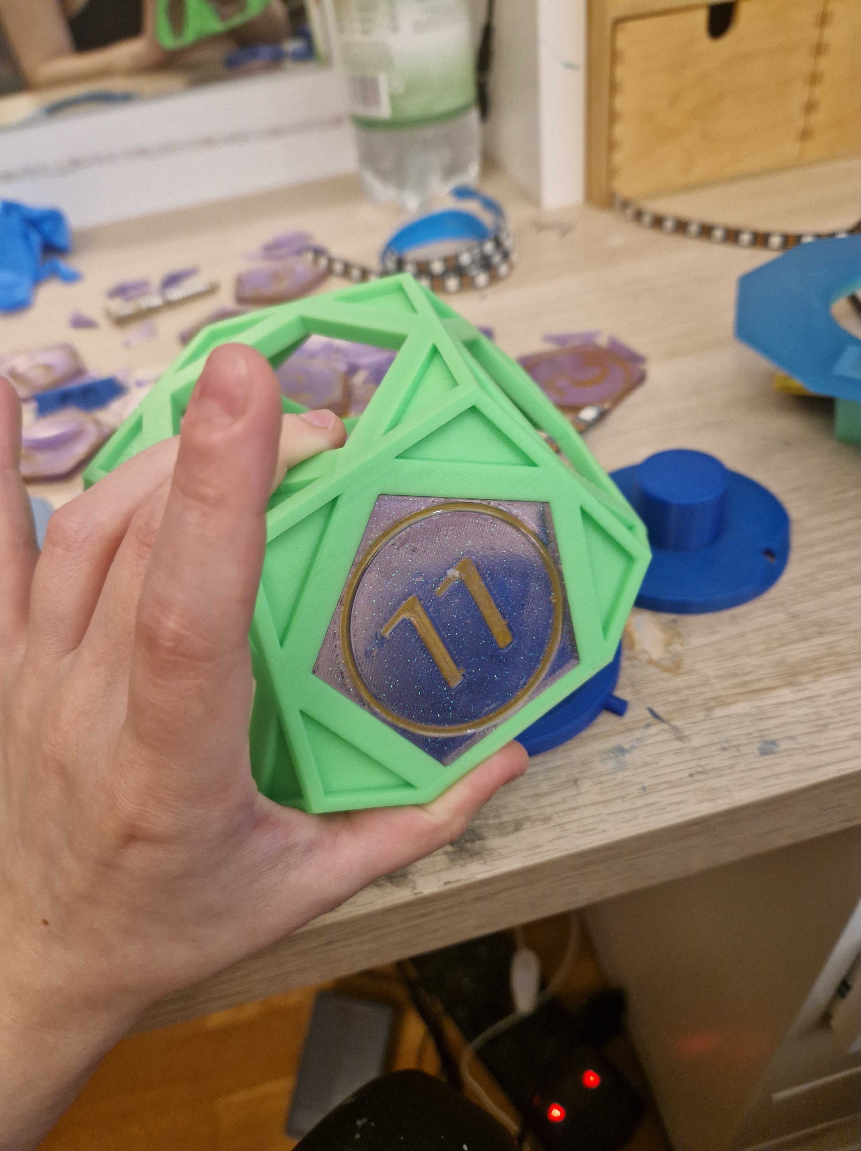 Kryształki zostały osobno odlane z żywicy epoksydowej na