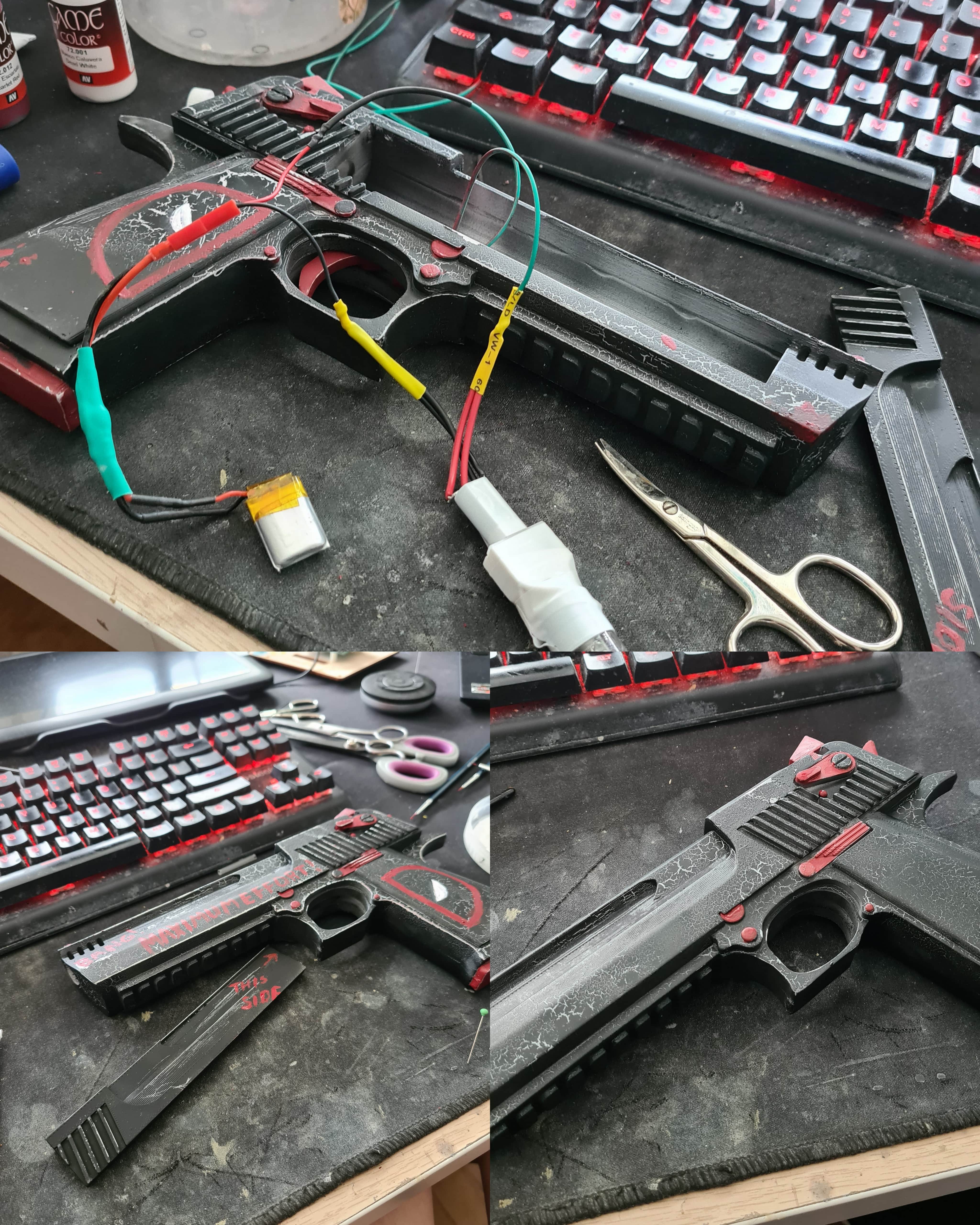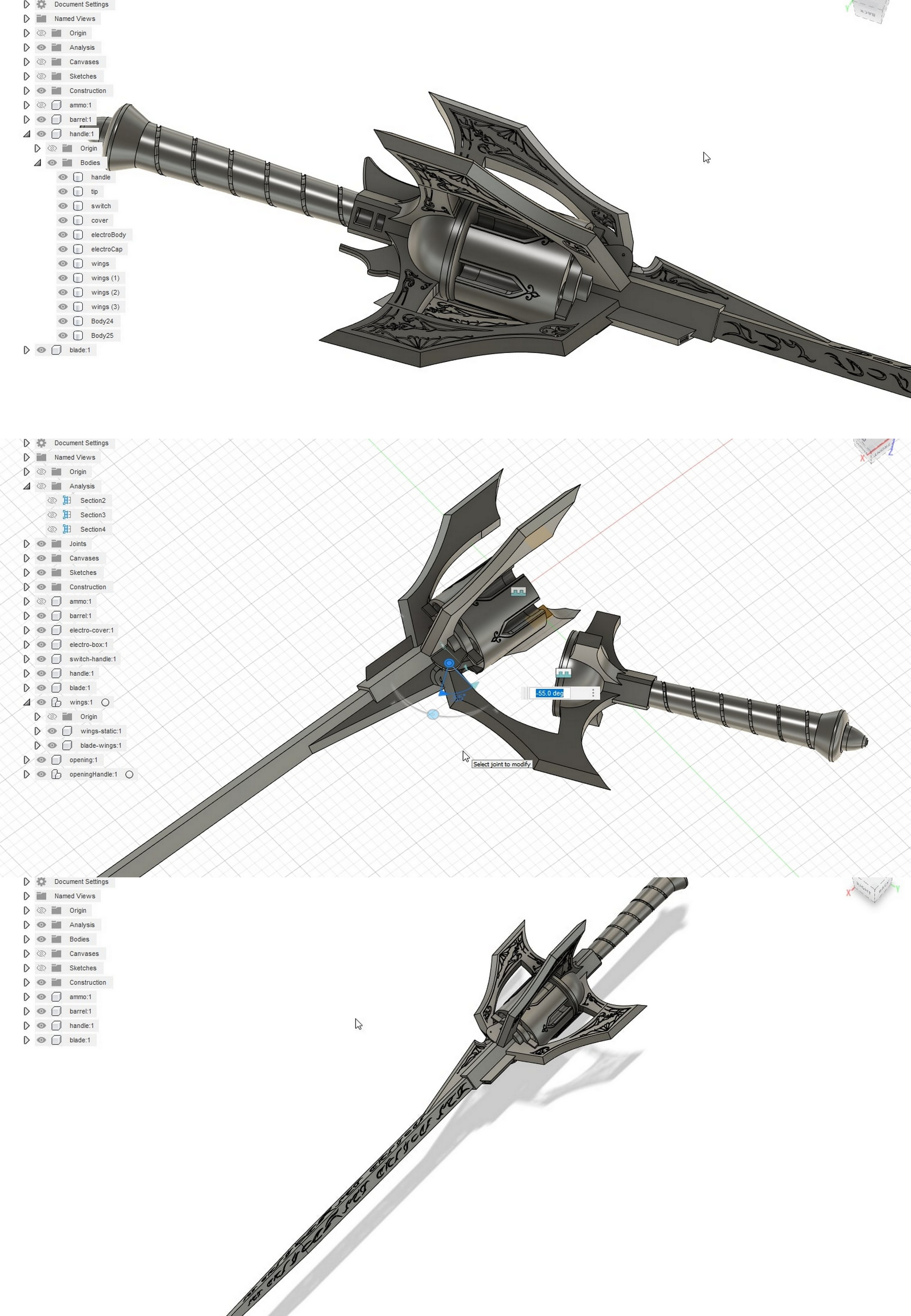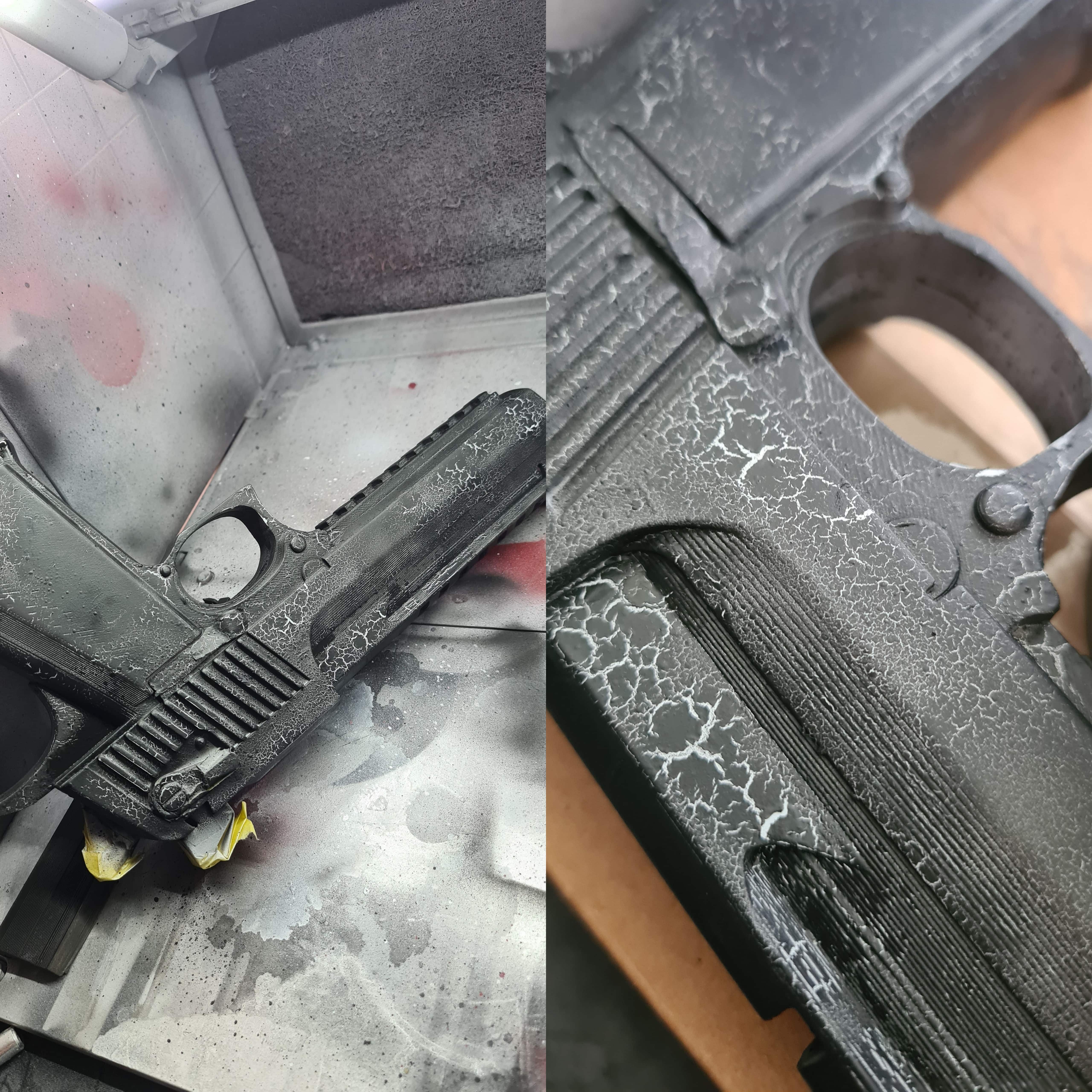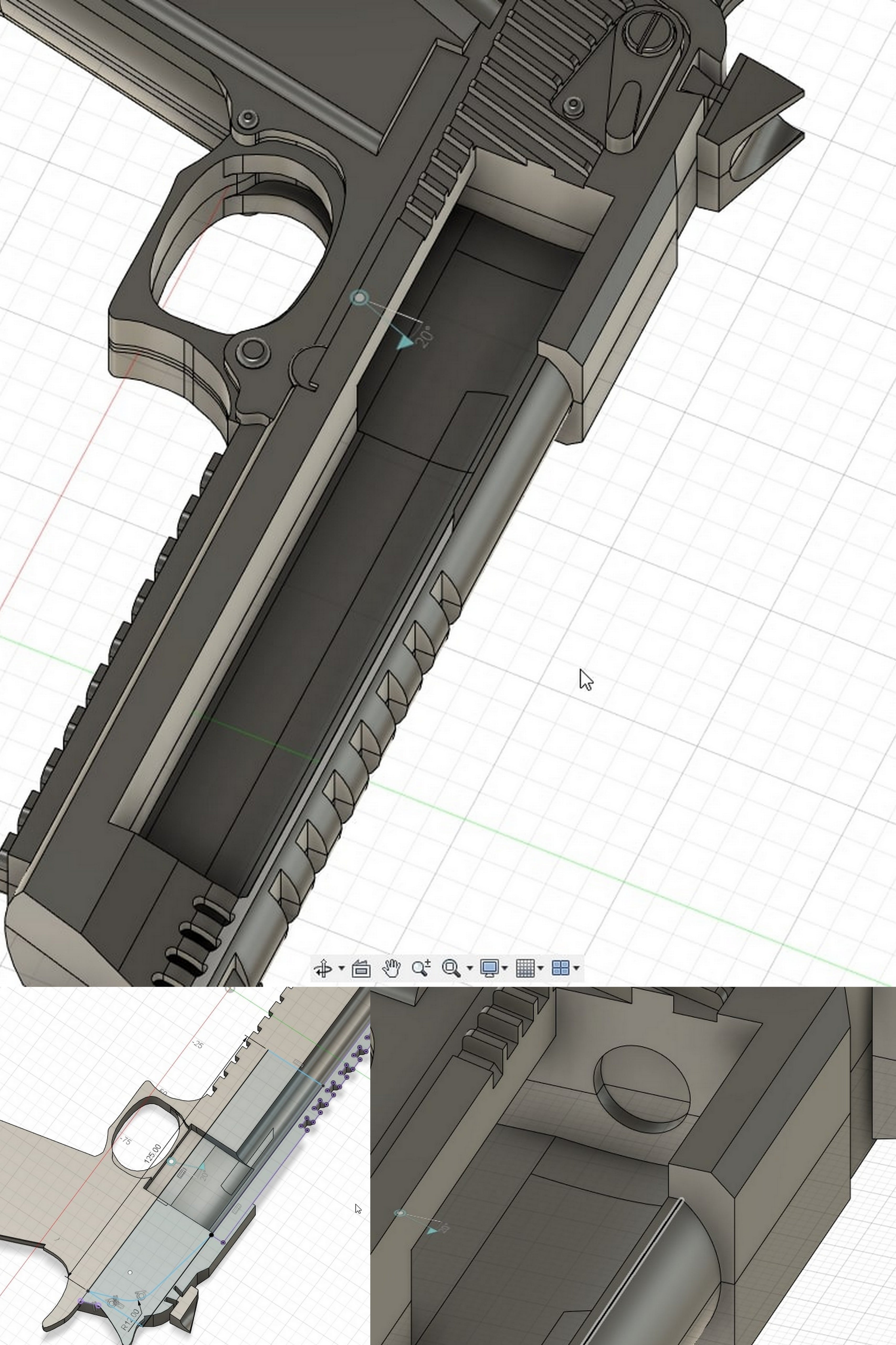 Wymodelowany w Fusion360 pistolet Deadpoola z mechanizmem,