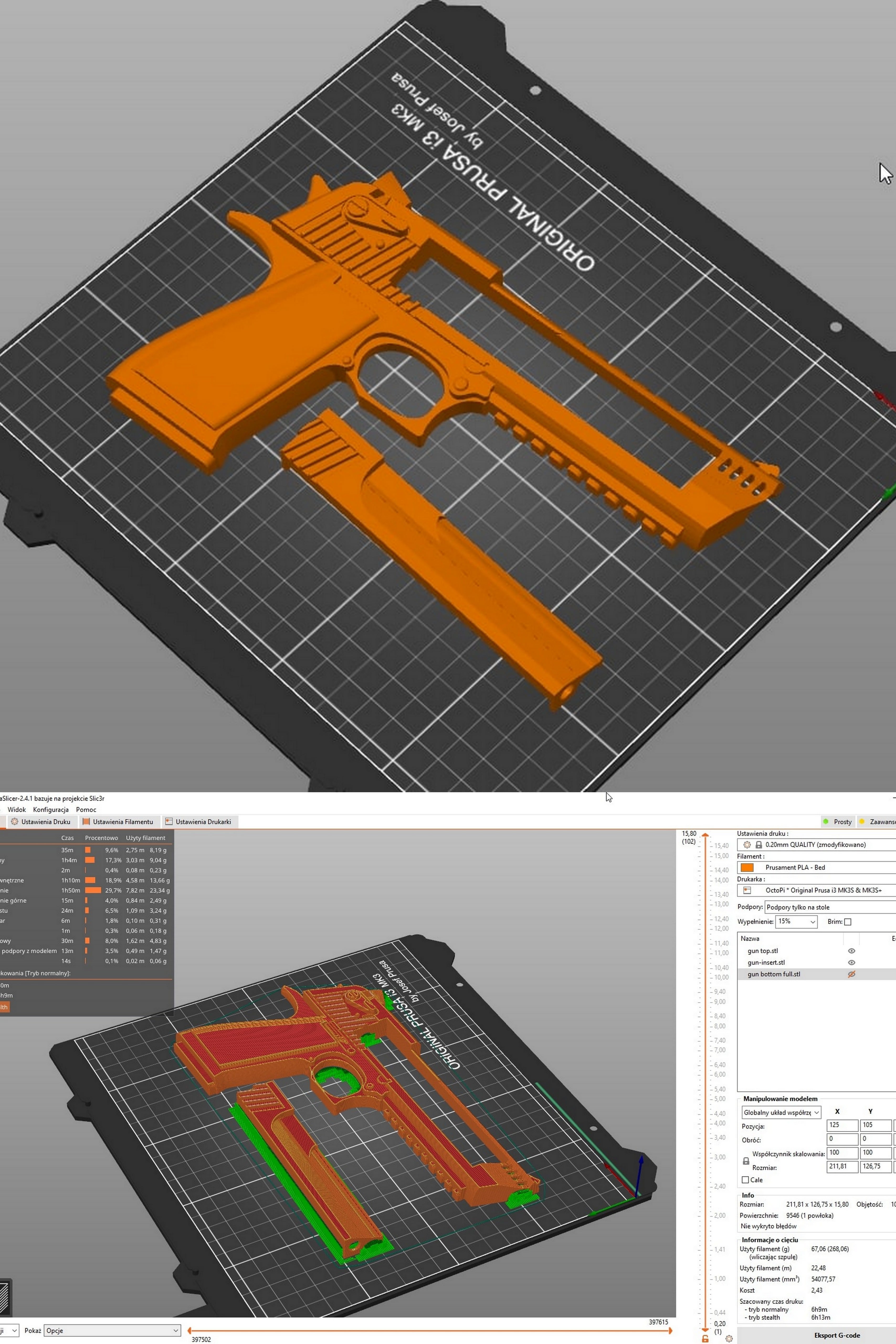 głównie na Original Prusa i3 MK3S+. Potrafię obrobić druk 3D